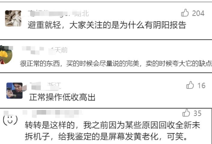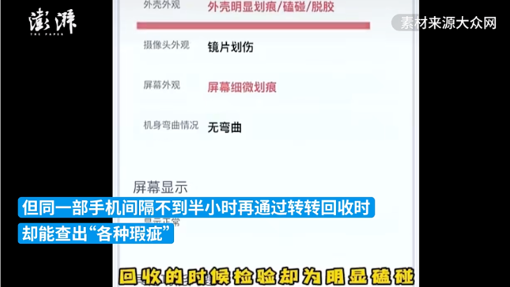 整个购机、卖机过程中,“猴大腕”称,转转销售手机时出具的质检报告显示手机没有问题,但同一部手机间隔不到半小时再通过转转回收时,却能查出“各种瑕疵”。