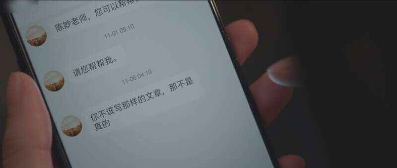 在舆论风口浪尖的“妙想世界”颇为被动,要不要接着推送推文?要不要道歉?就在编辑部一筹莫展之际,陈妙想到“巧妙”的应对角度——去采访张小穗的母亲,让她在镜头中控诉网络暴力,并把该视频作为当天推送的一篇以反对网络暴力为主题的文章的素材,将张小穗跳楼的悲剧指向网络暴力,责任甩给网友,“妙想世界”站在道德制高点上美美脱身,陈妙洋洋得意。