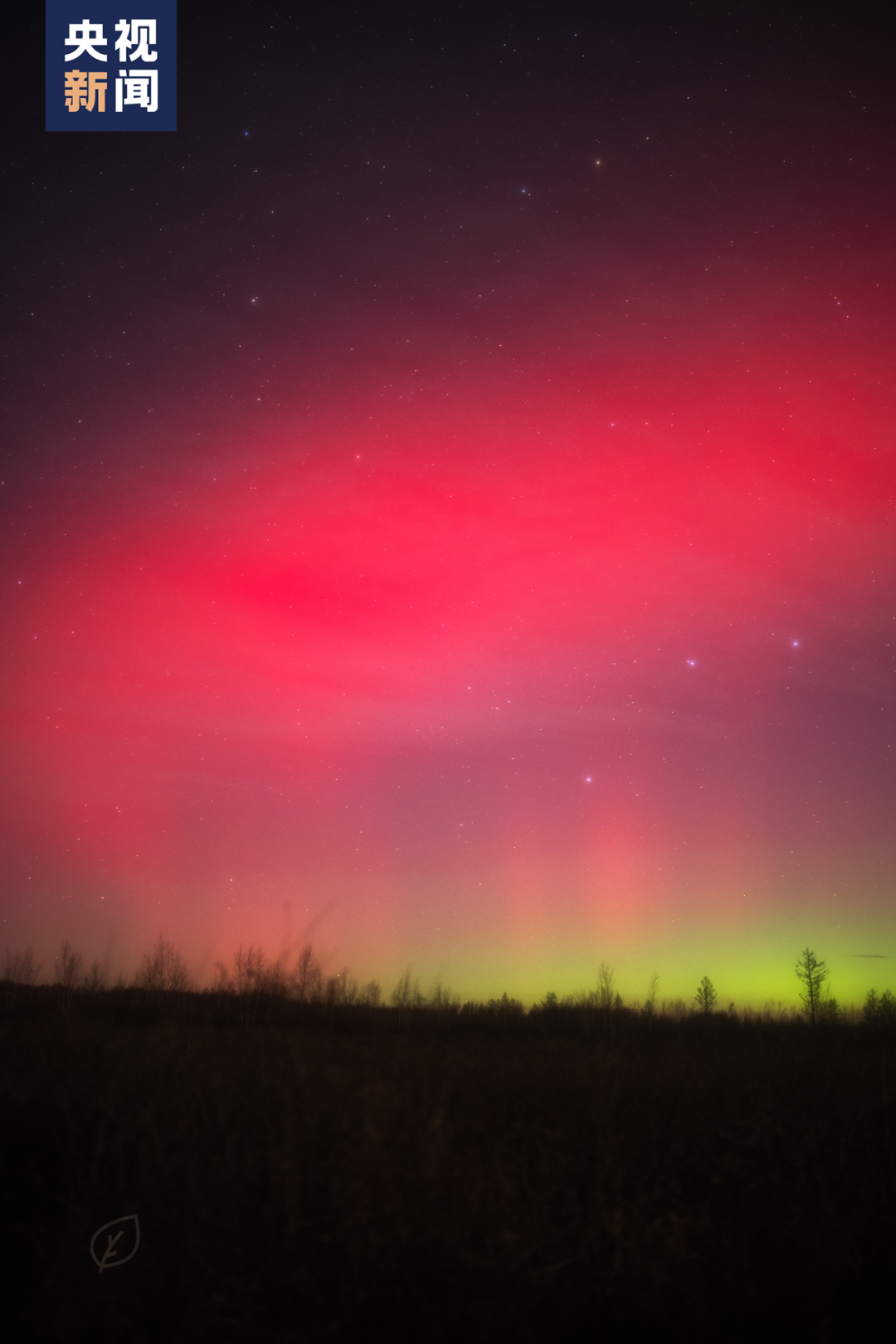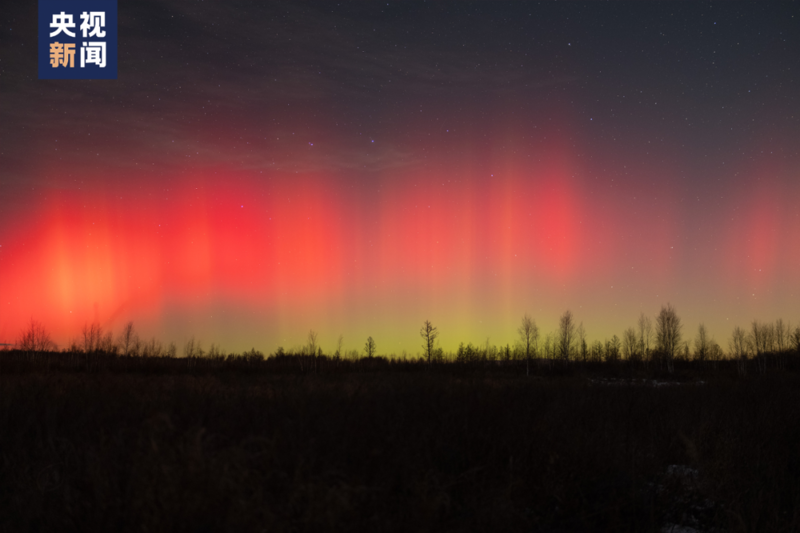 之后红色极光下面能看到绿色的极光了”