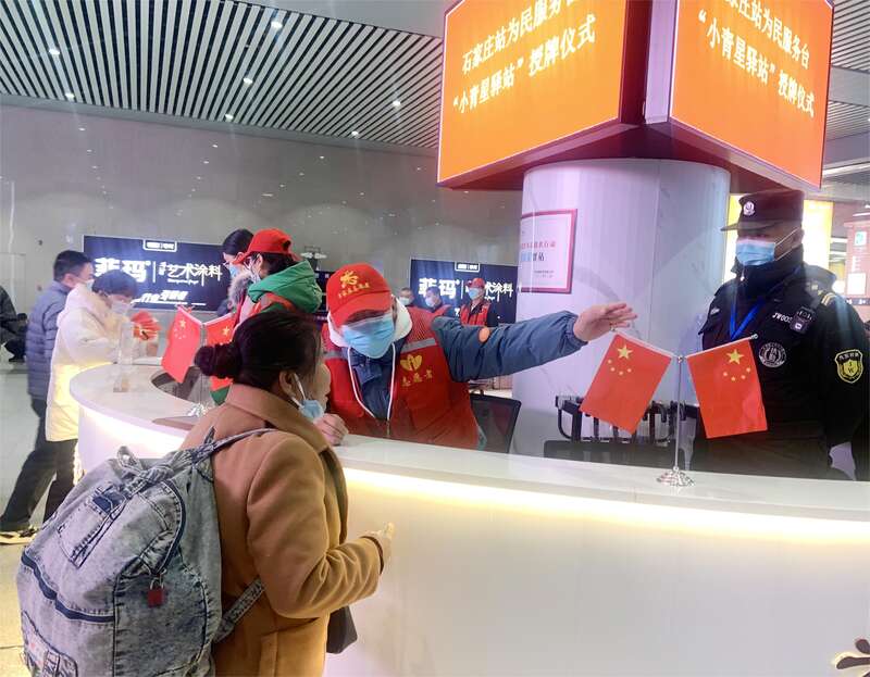 石家庄火车站“小青星驿站”的志愿者为旅客指路。受访者供图