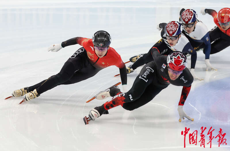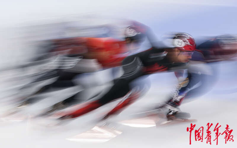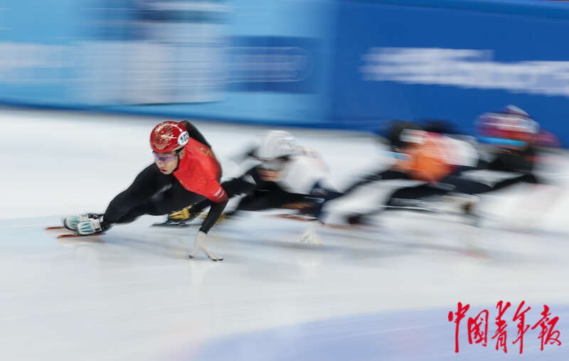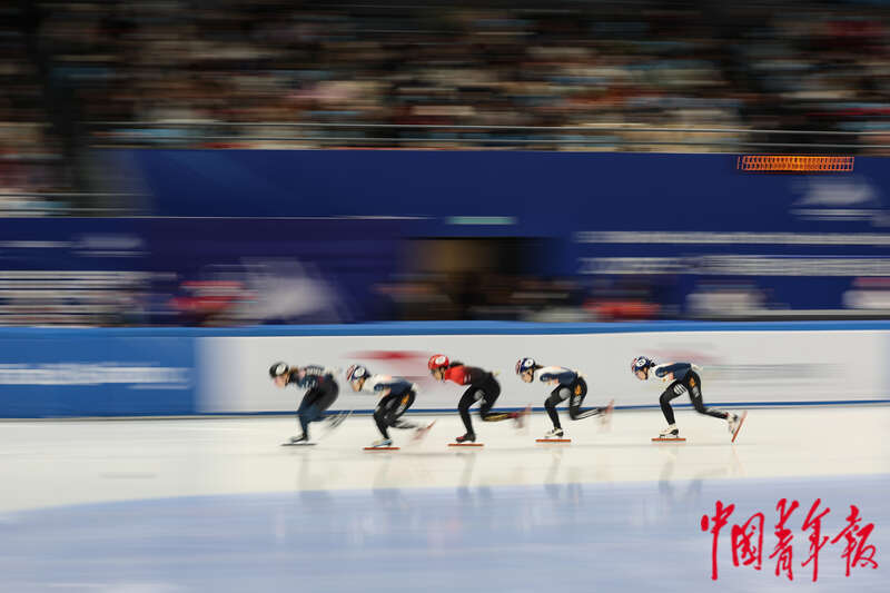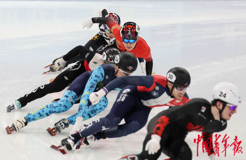 12月10日,北京首都体育馆,2023-2024赛季国际滑联短道速滑世界杯北京站,男子1000米半决赛,选手们在比赛中。中青报·中青网记者 曲俊燕/摄