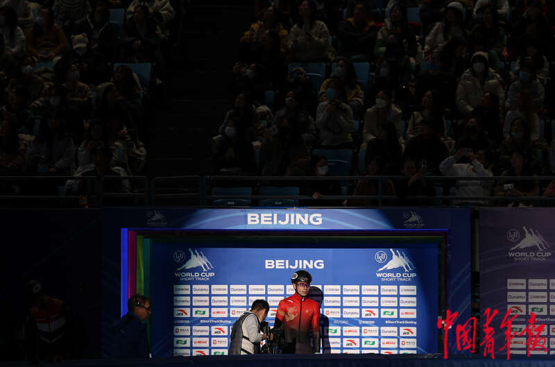 12月10日,北京首都体育馆,2023-2024赛季国际滑联短道速滑世界杯北京站,中国选手刘少昂在男子1000米决赛中出场。中青报·中青网记者 曲俊燕/摄