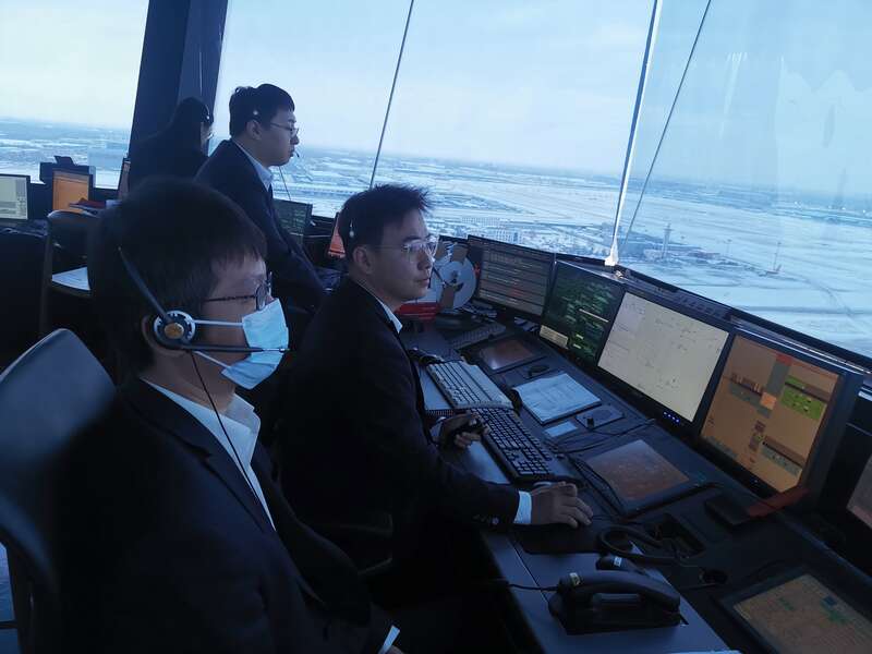 降雪期间,华北空管局各管制部门与首都机场、大兴机场各航空公司加强信息沟通,实时沟通计划调整和运行信息,共同开展除冰除雪保障工作。其中,放行席位采用双岗制,以便应对可能发生的延误,减少机组等待时间。塔台管制员提前在机场通波中加入注意降雪、风切变提示,并提醒机组注意低能见度。大兴空管中心管制部门及时启动冰雪天气保障预案,配合驻场单位,采用定点除冰的方式为航空器进行除冰,根据降雪调整保障能力,确保航班安全有序运行。