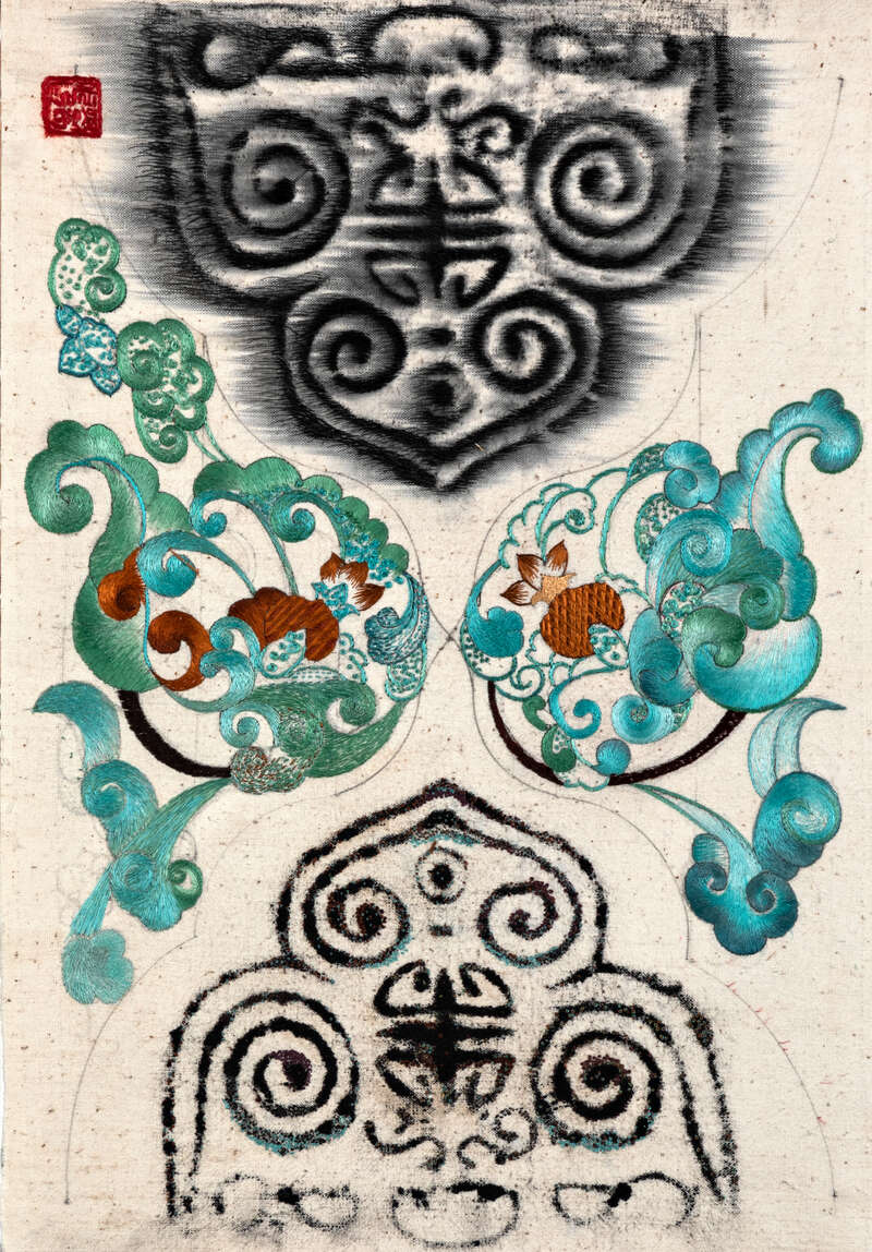 学员作品《丝路汉瓦》,刘云帆,仿真绣,32×45cm,2023