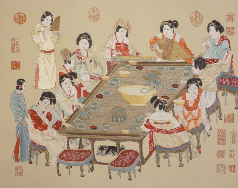 教师作品《宫乐图》,蒋怡,仿真绣,57×89cm,2009