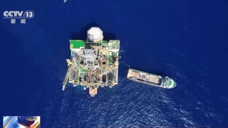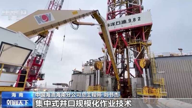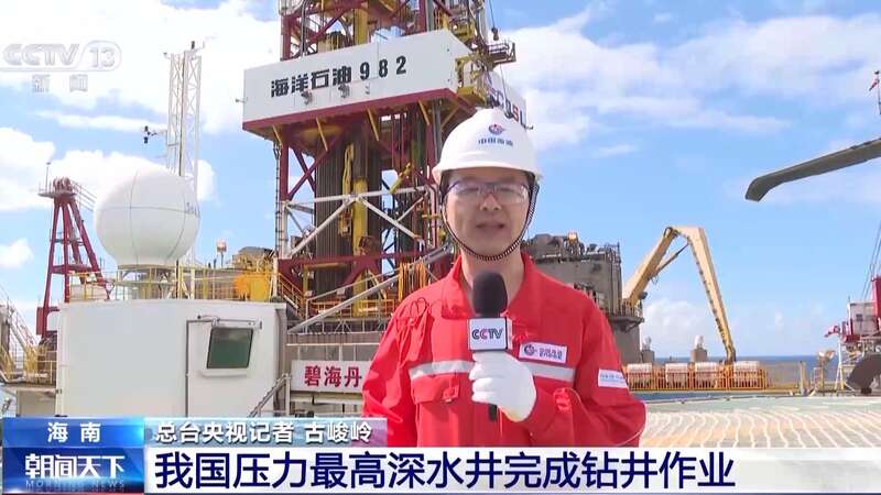 总台央视记者 古峻岭:我现在是在海南岛东南方向约180公里处的海洋石油982钻井平台上,在我脚下约1000米深处的海底 ,就是刚刚完成钻井作业的A12井,它的地层绝对压力超过69兆帕,相当于我们家用高压锅工作压力的1000倍。