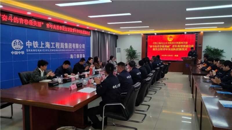 中国青年报客户端讯(李学远 中青报·中青网记者 王海涵)为大力弘扬劳模精神、劳动精神、工匠精神,近日,中铁上海工程局七公司团委在北沿江铁路项目海门制梁场开展“奋斗的青春最美丽”青年典型事迹宣讲暨青年突击队授旗仪式。项目属地市、区团组织相关负责人,中铁上海工程局党团部门及七公司、项目相关领导,团员青年代表参加活动。