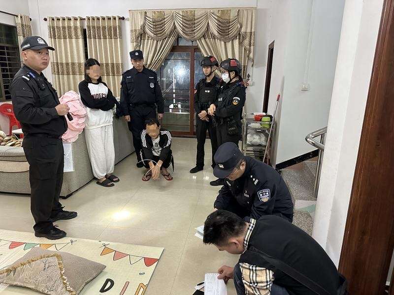 警方抓获犯罪嫌疑人现场。茂名公安供图