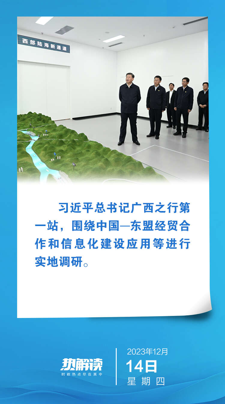 热解读12月14日,结束越南出访回国后,习近平总书记在广西考察。第一站,他走进中国—东盟信息港股份有限公司,围绕中国—东盟经贸合作和信息化建设应用等进行实地调研。