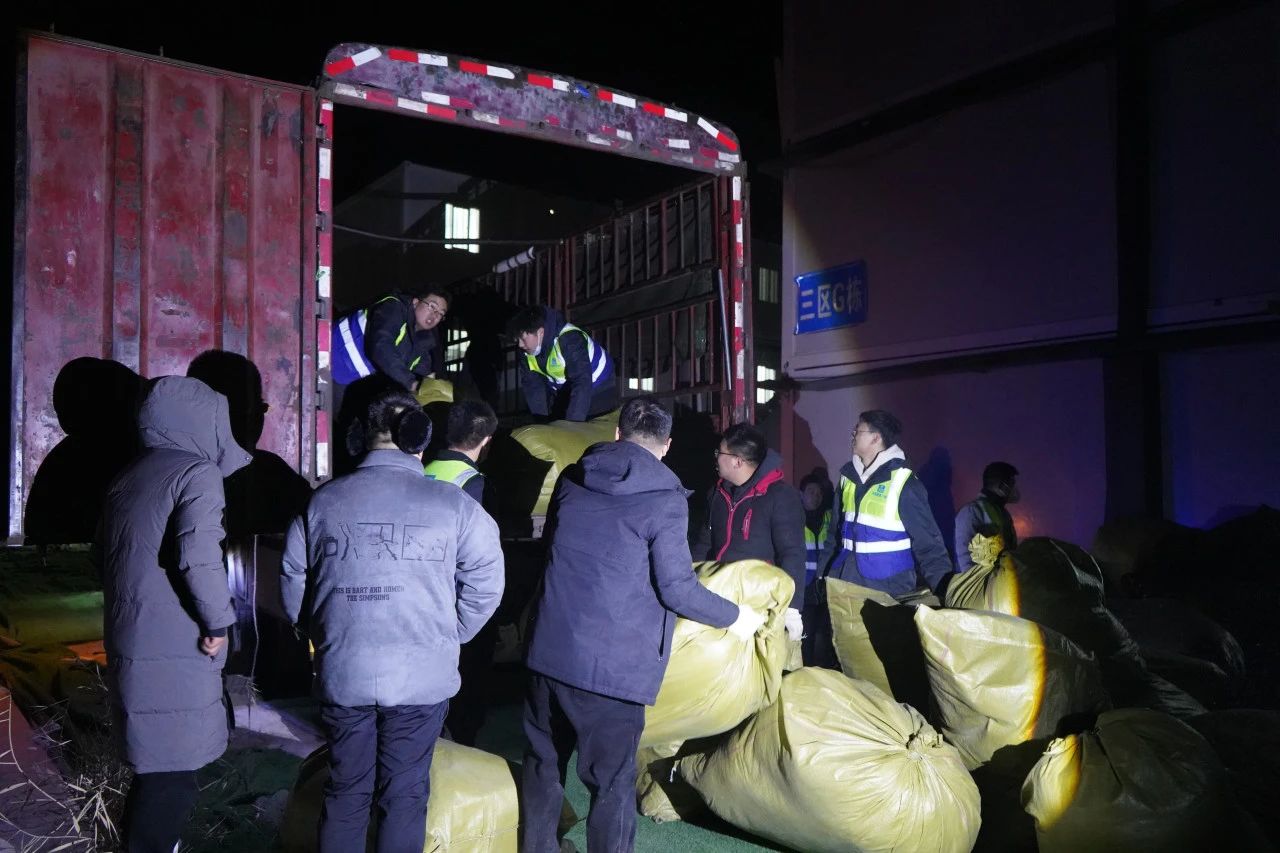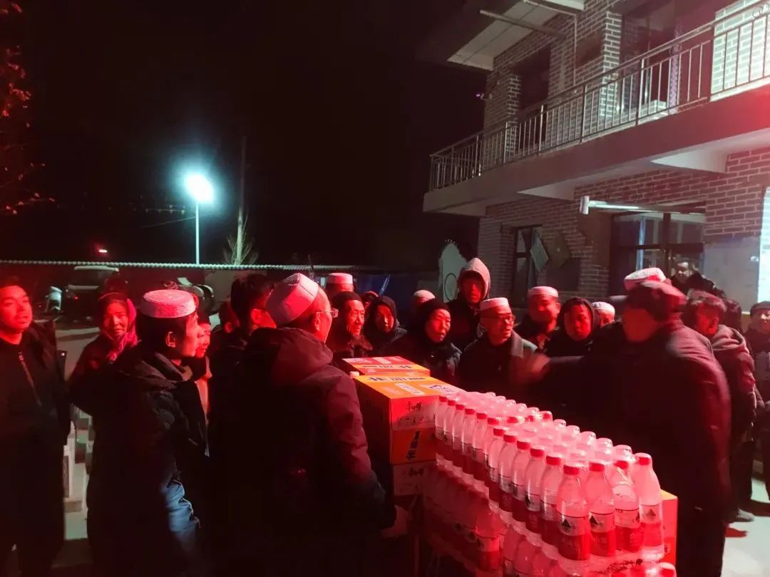 中建三局西成铁路项目成立由党员、团员和青年骨干组成的志愿服务队,紧急采买十余万元棉被、大衣、手套、饮用水等生活物资,火速运往积石山县地震灾区。
