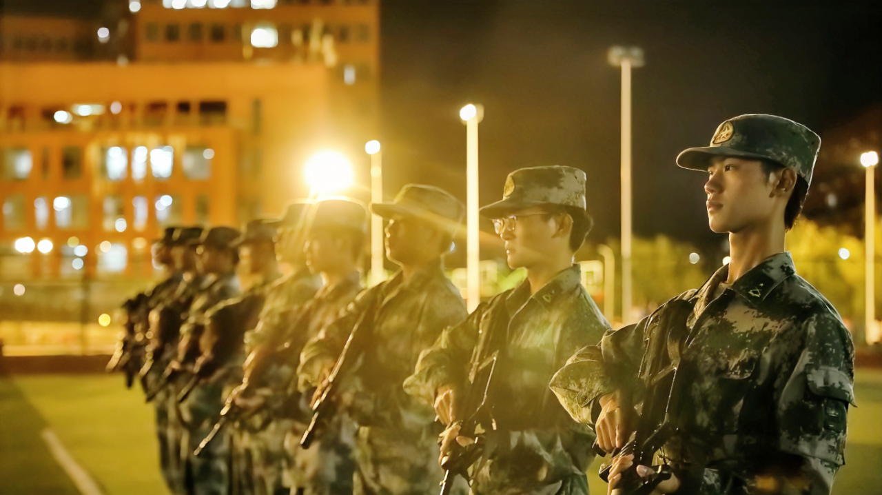 从悠长夏日到漫漫寒冬,无数个夜晚,在阅湖边、在体育场,新征团训练的步伐从未停歇。团内的每一次训练要求极其严格,单个军人徒手队列动作、56式礼宾枪队列训练、体能训练、战术训练等科目,站军姿、走齐步、踢正步、持枪训练、展旗、收旗等……每周四天,每次两个半小时。