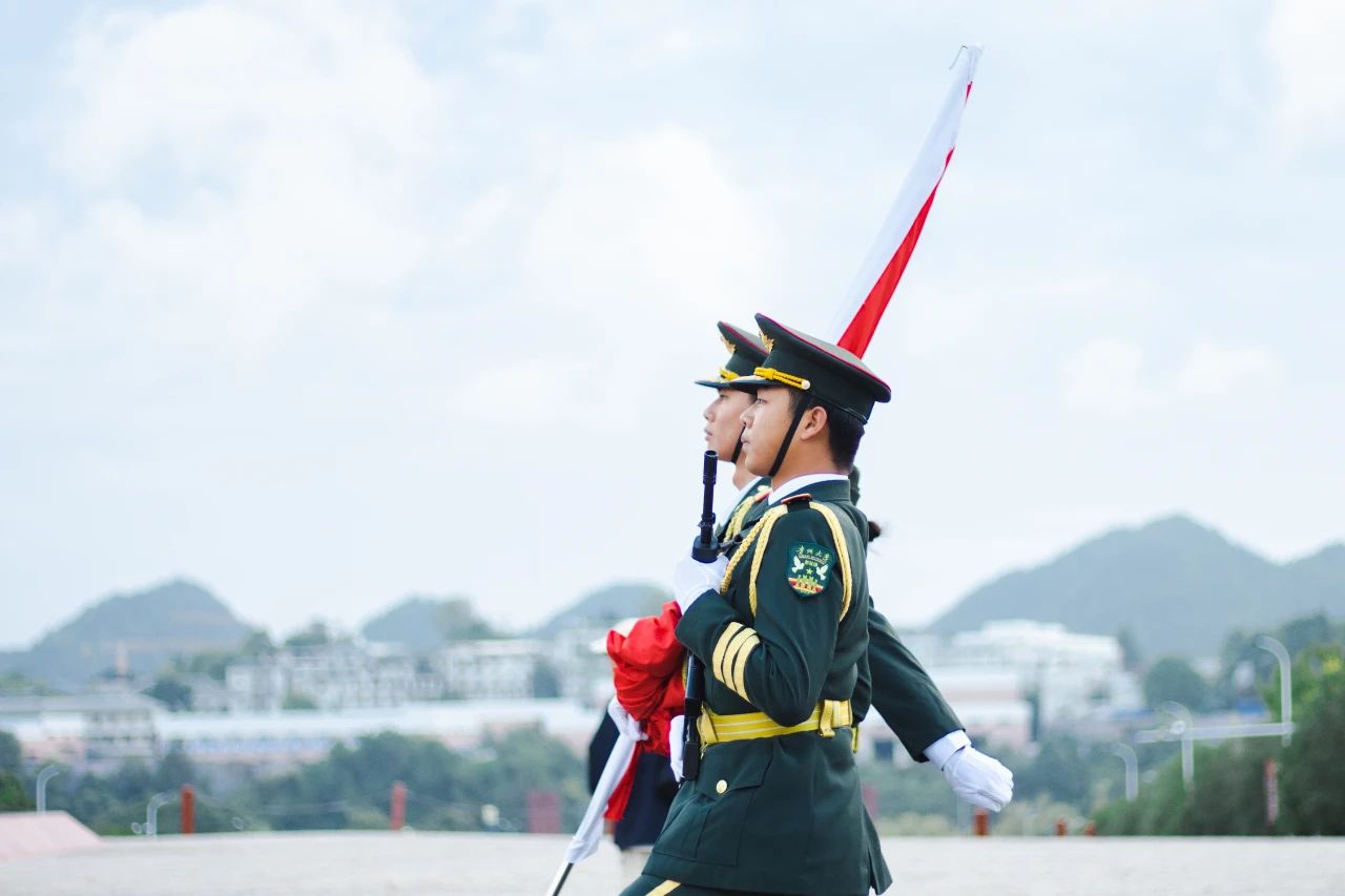 “齐步,走!”阅湖前传来铿锵整齐的步伐声,迎着熹微的晨光,擎着鲜艳的五星红旗,贵州大学新征团开始了每周的例行升旗仪式。120余次日常训练、40余次升旗仪式……“让青春在奉献中闪光,让热血在国旗下沸腾。”这是新征团的宗旨,亦是每一个成员对国旗最坚定、最忠贞的誓言。