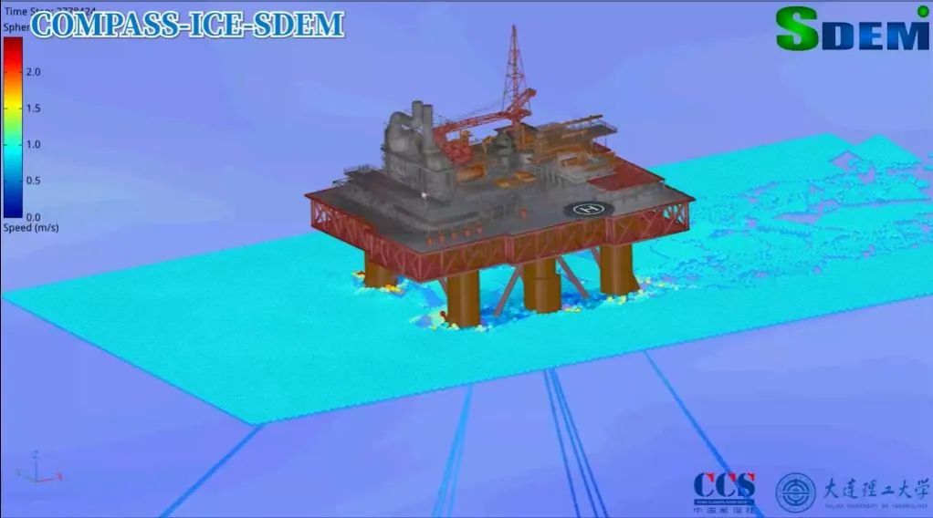 ICE-SDEM是一款基于离散元、有限元和计算流体力学的多介质耦合仿真软件,具有结构弹塑性动力学分析、海冰破坏力学分析及流固耦合分析功能。软件具有丰富的极地复杂冰况环境模拟功能,可实现平整冰、冰脊、冰山、碎冰等多种冰况下船舶直行、转向、尾向和斜向等多种冰区操作模式下的冰载荷数值计算;该软件集成了强大的多物理场建模和耦合分析能力,在并行框架下解决了不同数值方法间多时间尺度上的计算参数传递协调性问题,建立了海洋结构、海冰、海水耦合的大规模数值分析架构,具备CPU-GPU并行计算功能,发展了基于CPU-GPU协同并行环境下的高性能算法,实现了原型尺度下船海装备冰区作业过程的动力学高效仿真。