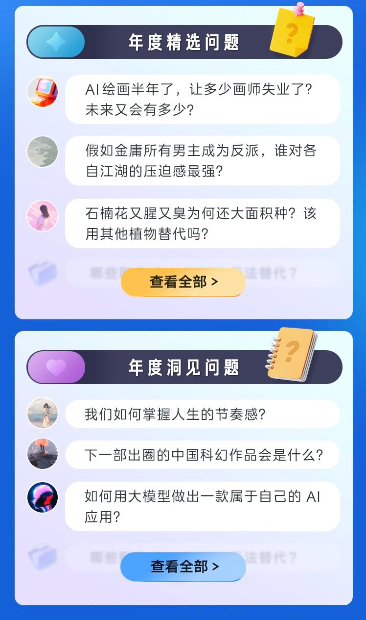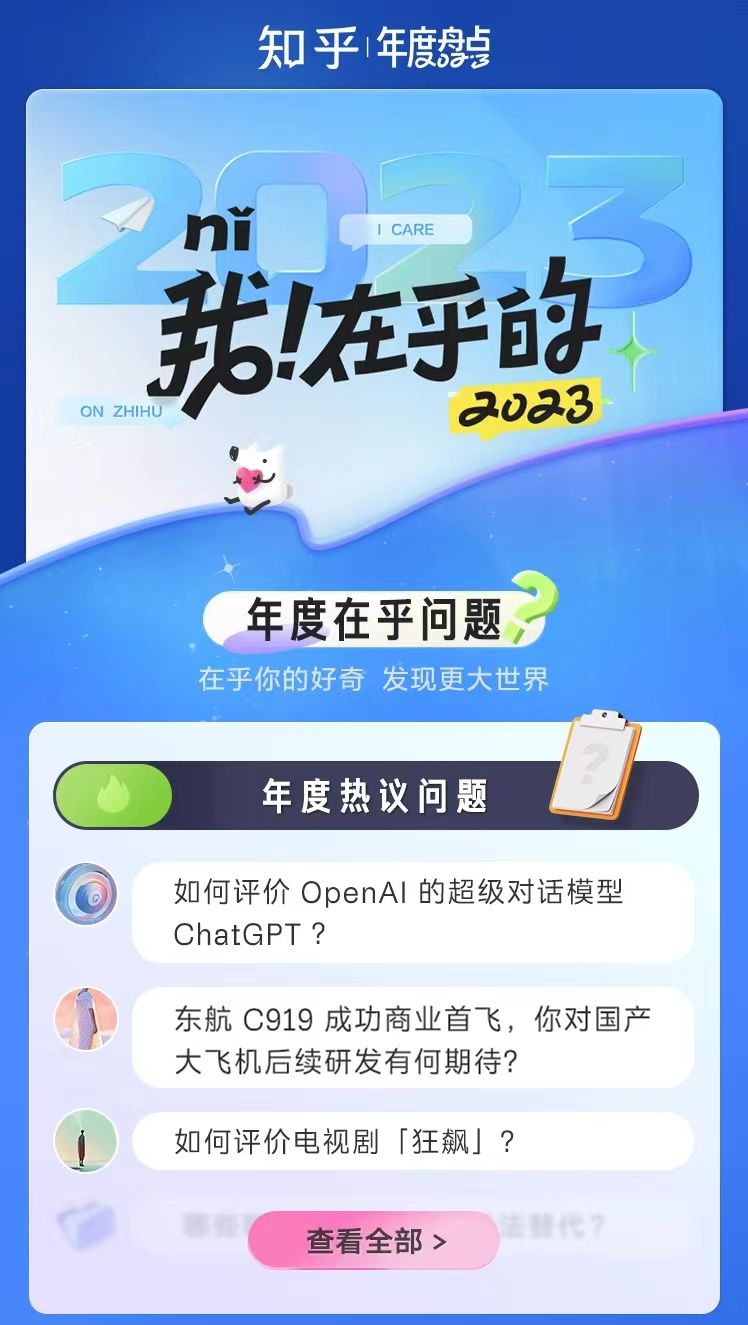 中国青年报客户端讯(中青报·中青网记者 蒋肖斌)2023年已进入倒计时,这一年有哪些问题让你陷入思考?哪些讨论为你带来收获?又有哪些想法让你感到惊喜、快乐?12月21日,知乎年终活动“知乎2023”系列活动发布了“年度在乎问题”和“年度在乎讨论”榜单,通过2023年用户浏览量、关注数和讨论价值等多个维度,精选出全年知乎上的问题、回答、想法内容。