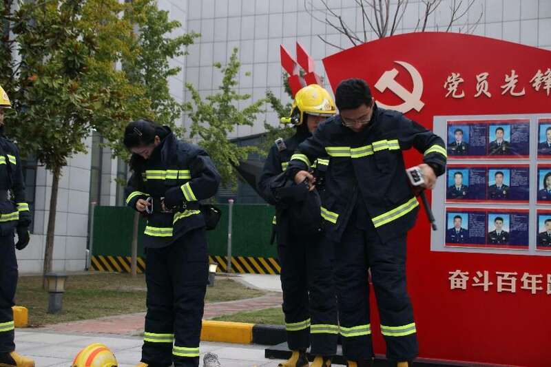 青年代表穿上消防服,体验消防员日常训练。共青团西安市委/供图