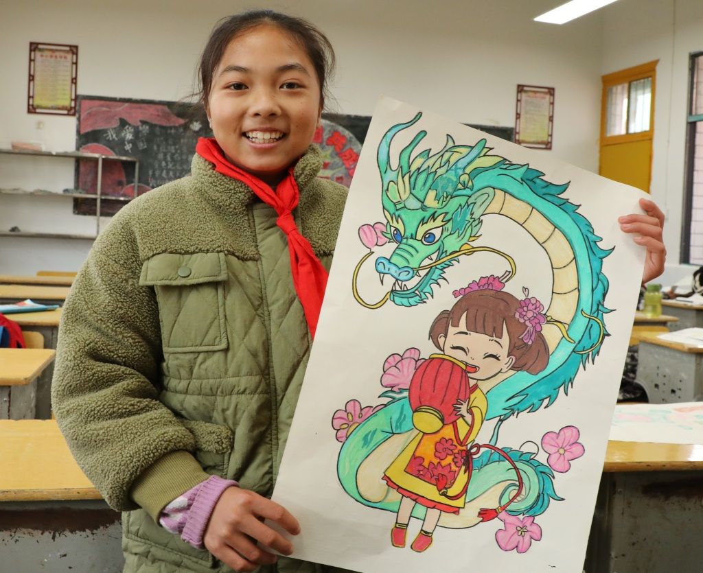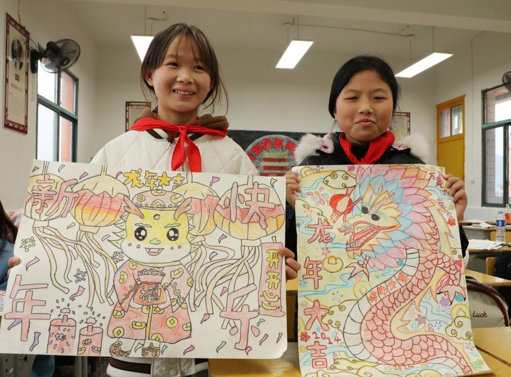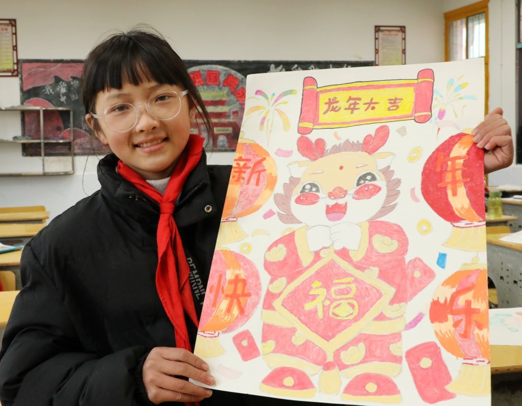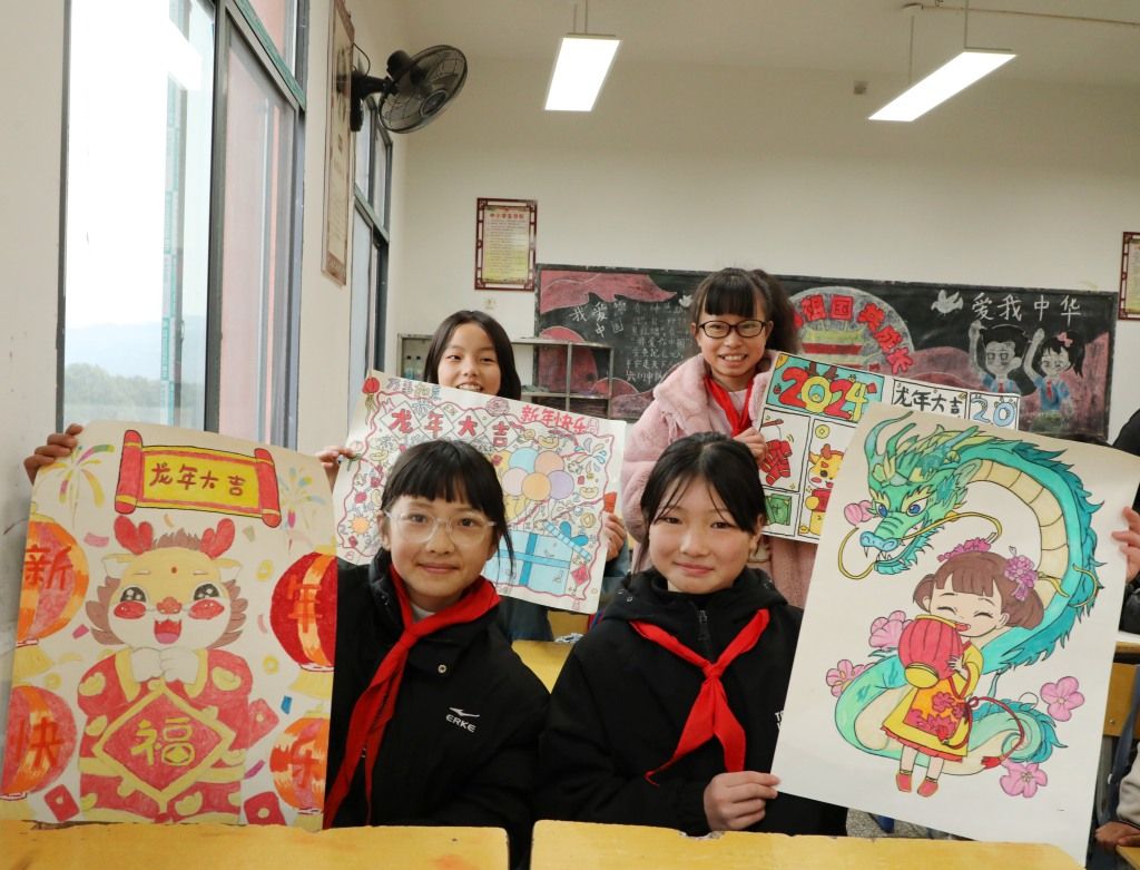 2023年12月27日,在湖南省保靖县清水坪学校,老师指导学生绘制年画,体验绘画的乐趣。元旦将至,该校组织师生开展剪窗花、绘年画、学习传统文化等活动,不仅让孩子学到丰富的节日文化知识,丰富课余文化生活,增进他们对传统民俗文化的了解,喜迎新年的到来。