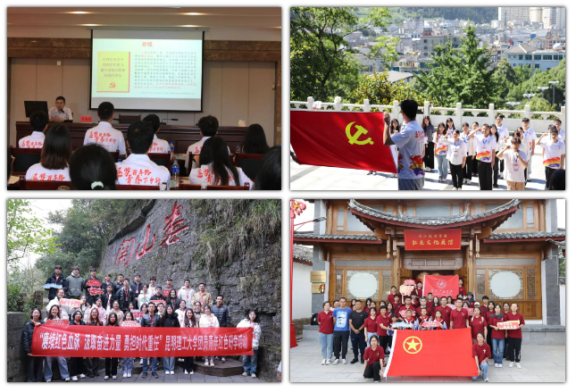 依托校地资源,广泛开展国情考察、社会观察等实践活动,注重抓好社会实践环节中的团员和青年主题教育,依托各地红色资源,深入遵义会议旧址、扎西会议旧址、中共云南一大会址、蒙自烈士陵园、滇西抗战纪念馆等红色教育基地开展实地研学,在潜移默化中引领广大团员和青年铸牢对党忠诚,坚定理想信念,发扬斗争精神,勇于挺膺担当。