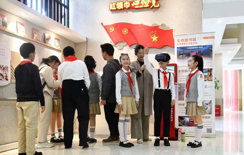 福州市温泉小学、屏西小学等10所学校被授予福州市“鼓楼区‘青少年爱国主义读书教育 新华悦读驿站’”称号,福建新华发行(集团)有限责任公司福州分公司向学校代表赠送价值5万码洋主题书籍,并设置“元宇宙”阅读体验馆。