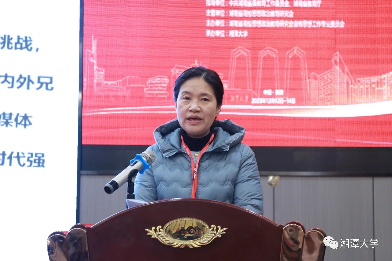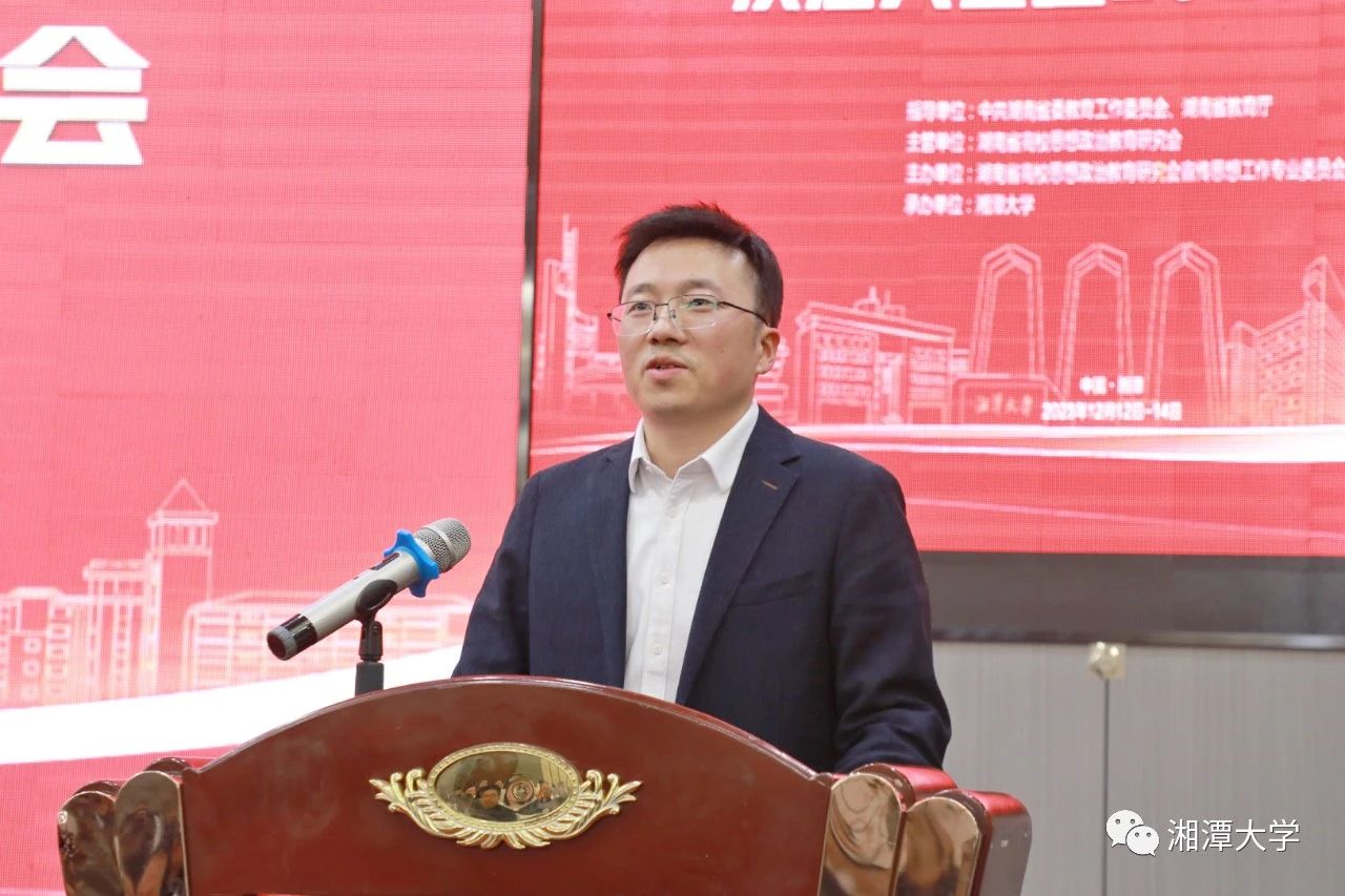 湖南省委教育工委宣传部部长甘文波表示,宣传思想工作专业委员会在省高校思想政治教育研究会中发挥着龙头引领作用。希望专委会在今后的工作中追求实质、追求合力、追求规范,站在人民立场、时代前沿、旋涡中间,着力增强新闻舆论的传播力、引导力、影响力和公信力。以理直气壮、舍我其谁、取法乎上的态度,以学深悟透、知己知彼、世事洞明的能力,以大象无形、润物无声、创新无限的方法,围绕思想政治教育工作,深研专业知识基础,聚焦课堂实质效果,着力提升思政课的抬头率、有效性和针对性。