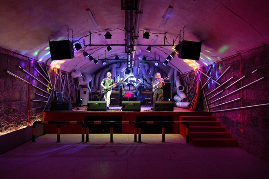 2023年11月8日,重庆,防空洞里的Live Cave(防空洞音乐现场),乐队成员在进行演出排练。