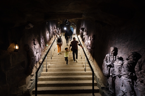 2023年11月26日,重庆,市民参访重庆大轰炸惨案遗址。1941年6月5日,抗日战争时期,日军对重庆进行轰炸,市民大量涌入较场口防空大隧道,导致了“六·五”隧道窒息惨案。如今,这里已成为当地的国防教育基地。