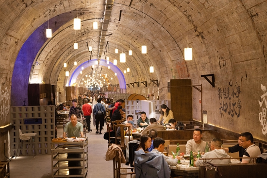 战火年代,防空洞是山城人民的避风湾。时过境迁,这些卸下历史重任的防空洞,正演绎出无限新的可能:嵌入山体的桂花园加油站,24小时营业的“地下之城”老火锅,珍藏城市记忆的书屋,串联起解放碑地下空间的地下环道,助力重庆轨道交通建设的大隧道……这些新场景成为城市“微更新”的一个样本,延续历史记忆的同时,也让越来越多的人防工程“别有洞天”。