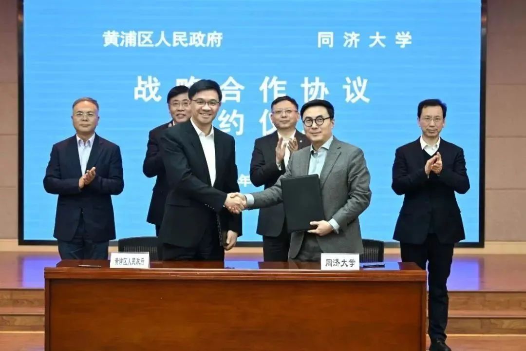 签约仪式在黄浦区举行。同济大学党委书记方守恩、黄浦区委书记杲云出席并讲话。同济大学校长郑庆华、常务副校长吕培明、副校长娄永琪,区委副书记、区长沈山州,区委常委、副区长徐知,区委常委、组织部部长李铭,副区长袁园出席。