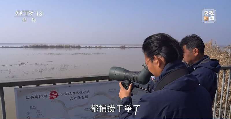 江西鄱阳湖南矶湿地国家级自然保护区管理局巡护员 熊波:禁渔之前,保护区的子湖泊,都是承包给当地的渔民,到了冬天越冬期的时候,渔民把子湖泊里面的鱼虾之类,都捕捞干净了,那鸟就没得吃了,所以导致人鸟争食的矛盾非常突出,禁渔后,鸟类的分布范围也比较广,也不怎么怕人了。