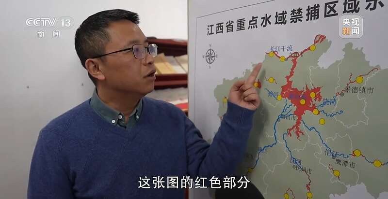 江西省农业农村厅禁捕办专职副主任 詹书品:这张图的红色部分,就是我们长江流域重点水域的部分。另外,这黄色部分,就是35个水生生物保护区。为了巩固长江十年禁渔成效,这五条河的干流,一同纳入到整个重点水域来进行常年禁捕,大家知道渔业资源是流动的,是需要进行一体化、流域化保护的。