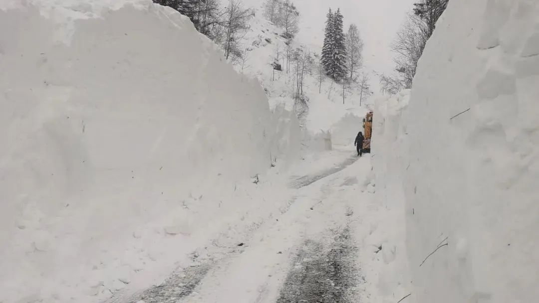 省道232线通向喀纳斯景区的K57公里处完全被雪崩掩埋,被掩埋的道路长达6公里,积雪最深处超过5米,已经与山体连成一片。