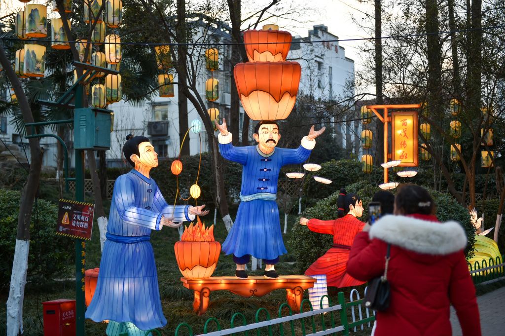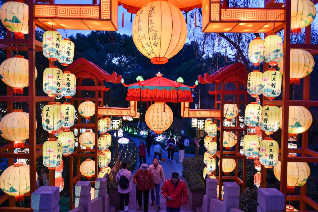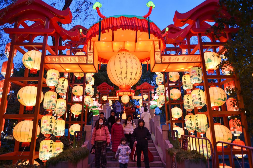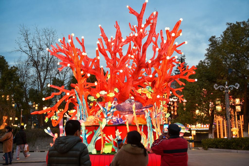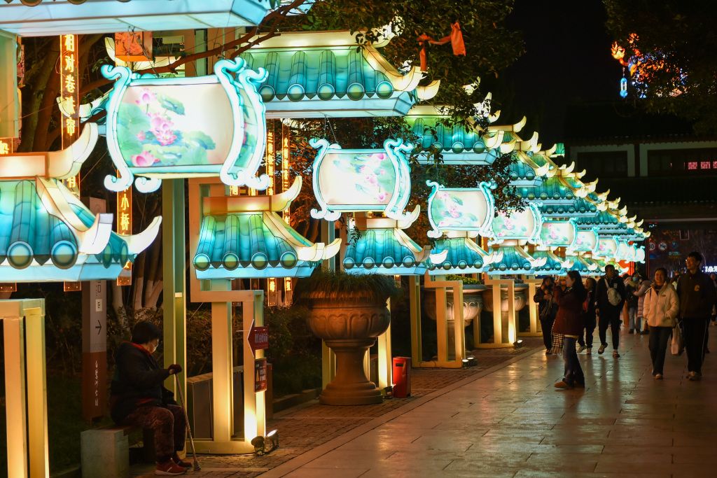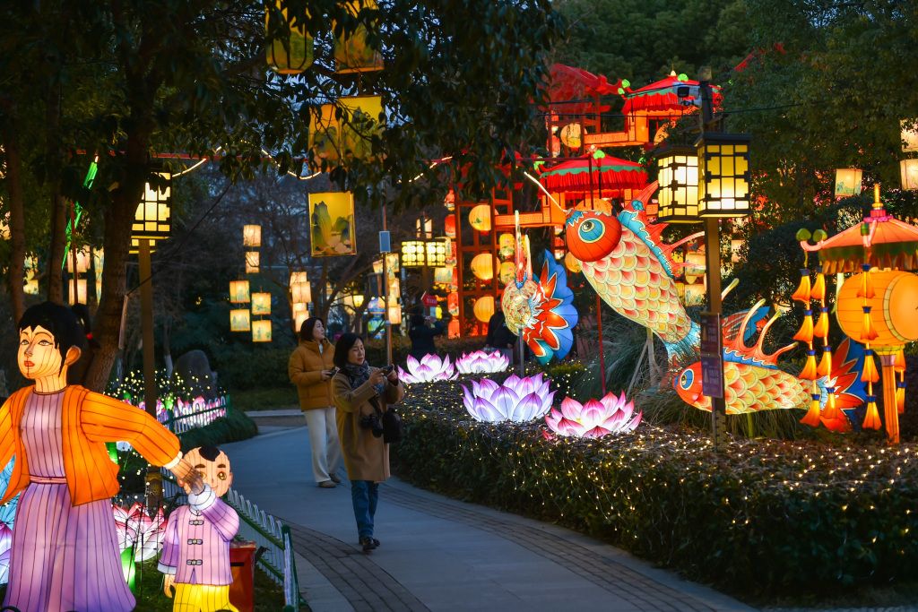 春节临近,江苏省南京市白鹭洲公园的《上元灯彩图》非遗艺术展灯火璀璨,为市民游客呈现一场精彩的视觉盛宴。据悉,本次非遗艺术展以明代国宝级画作《上元灯彩图》为主题,共设置68组大小形态各异的主题灯彩,分设为5大文化主题展区。