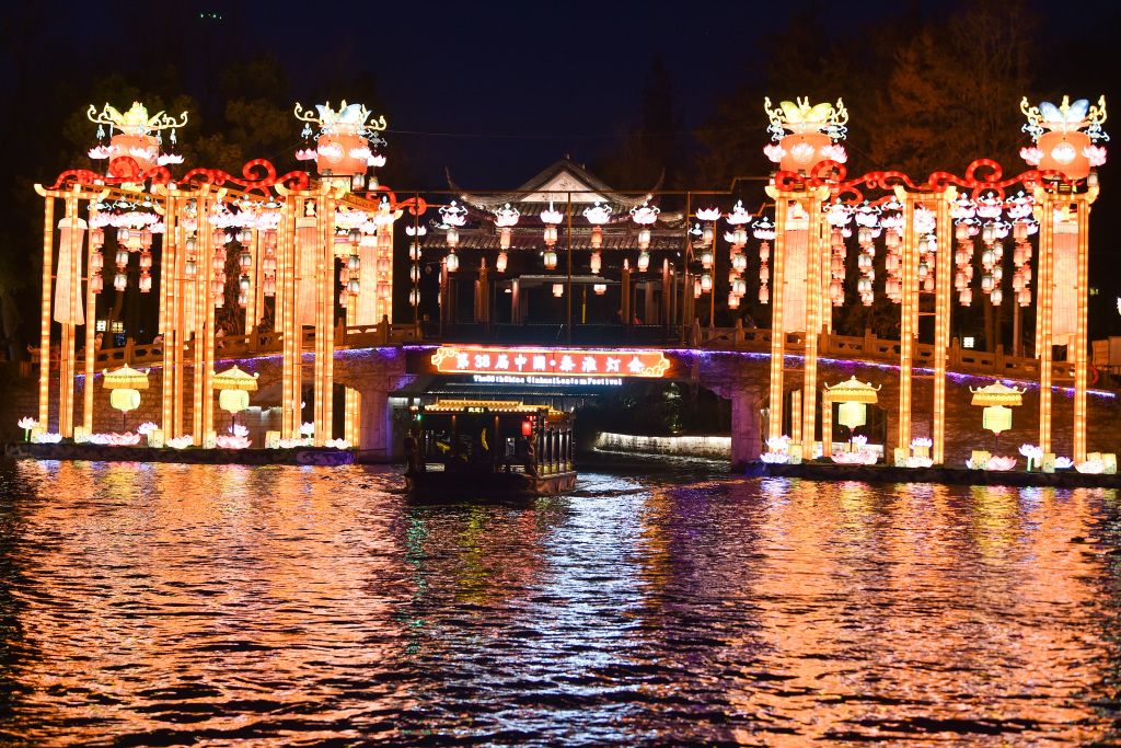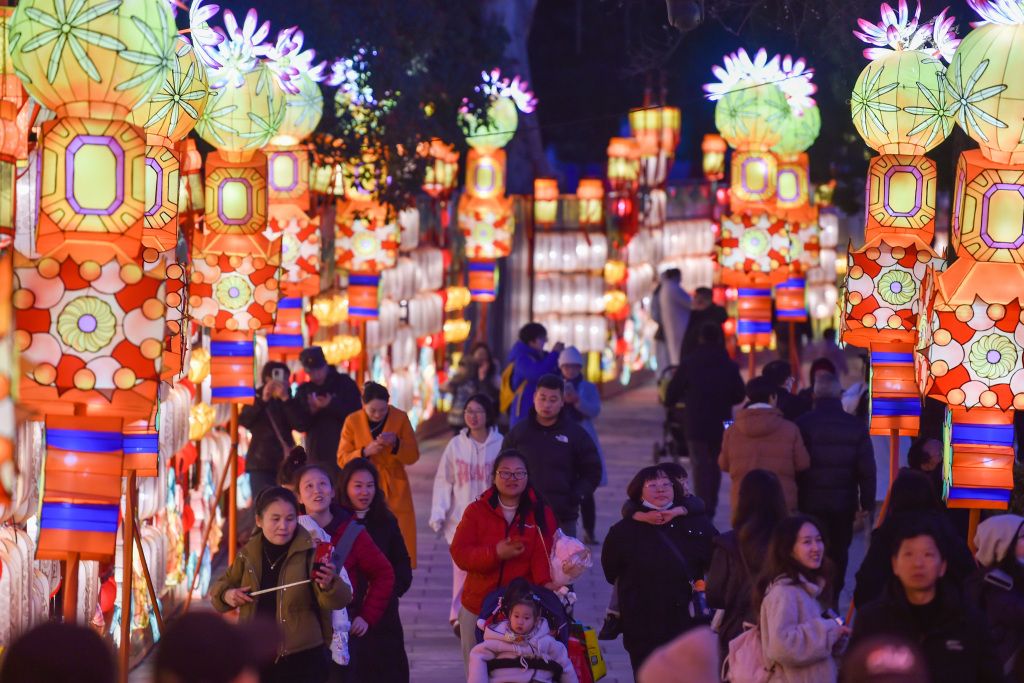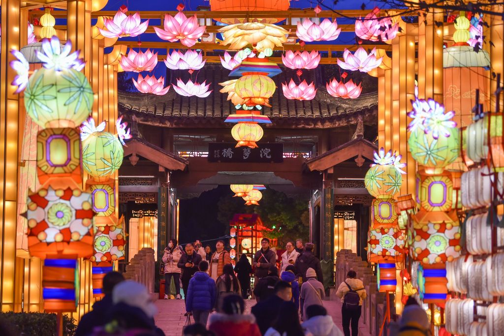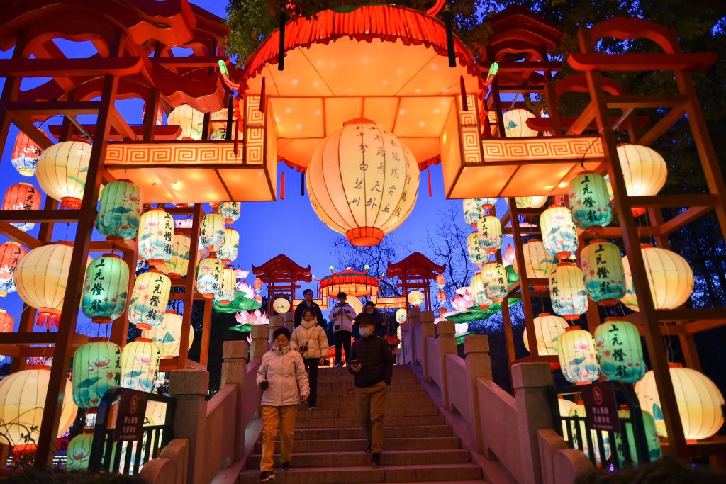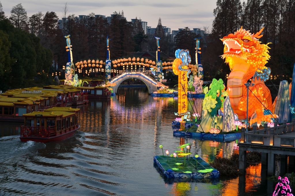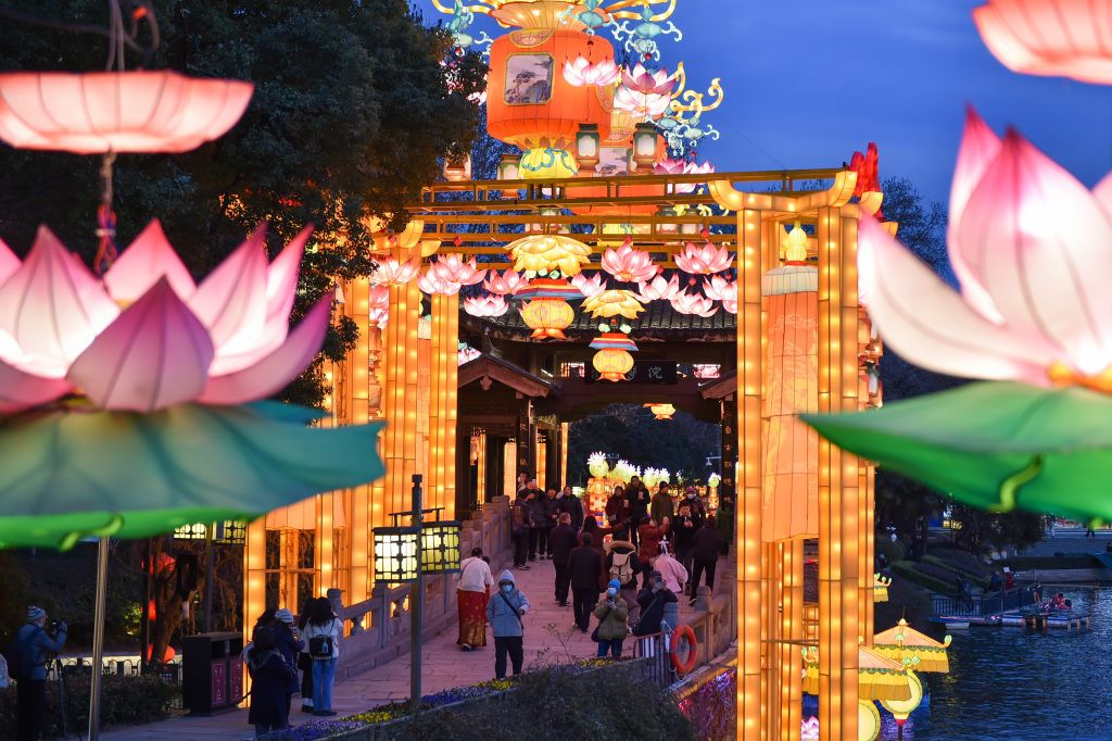 春节临近,江苏省南京市白鹭洲公园的《上元灯彩图》非遗艺术展灯火璀璨,为市民游客呈现一场精彩的视觉盛宴。据悉,本次非遗艺术展以明代国宝级画作《上元灯彩图》为主题,共设置68组大小形态各异的主题灯彩,分设为5大文化主题展区。