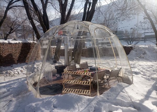 2024年1月11日,乌鲁木齐,葛家沟雪村吸引了众多游客前来“打卡”。