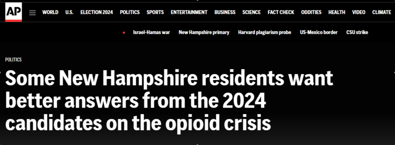 美联社(AP)近日报道了一位生活在美国新罕布什尔州的克里斯蒂娜·艾米奥特(Kristina Amyot)的故事,她此前常年与毒瘾(主要是海洛因)作斗争。文章写到,新罕布什尔州虽然是一个小州,但在美国的“总统政治”中却扮演着重要角色,在多次大选中,候选人都承诺将采取应对阿片类药物危机的行动。