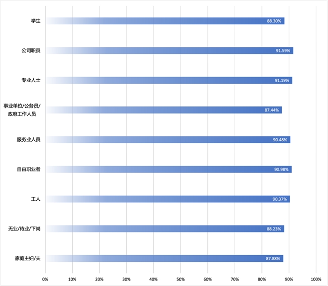 从行业维度看,短视频直播平台能满足多个行业人士的知识需求。调研显示,通过短视频直播平台获取知识的学生、公司职员、服务业人员、自由职业者、工人占比均在87%以上。短视频直播形式的知识内容具有图像化、口语化、精炼化的特点,对于学习时间零散、学习精力有限的职业人士来说,这种学习方式更为高效和便捷。