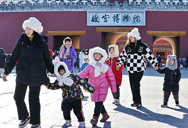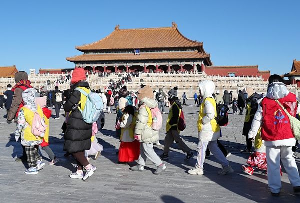 2024年1月24日,北京故宫博物院人头攒动、游客如织,迎来寒假首波客流高峰。近日,隨着全国中小学陆续放寒假,大批家长携娃参观故宫的热情高涨,客流量持续爆棚,“亲子游、研学游”重回出游主力军。据悉,今天(1月24日)至30日故宫门票已全部约满。
