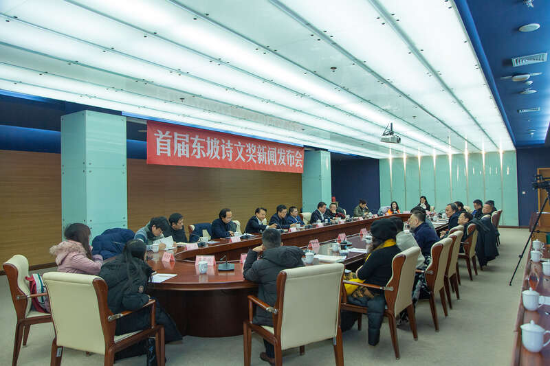 首届东坡诗文奖新闻发布会现场。主办方供图