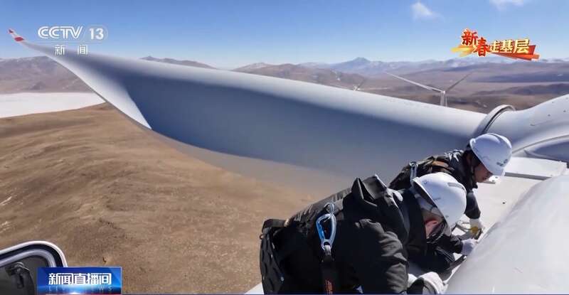 世界海拔最高的风电场——西藏措美哲古风电场,去年10月份正式投入使用。春节将近,现场的运维师傅们在海拔5000多米的高原上检修风机,保障当地14万个家庭的用电。