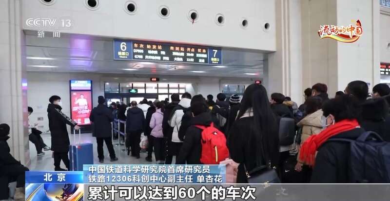中国铁道科学研究院首席研究员 铁路12306科创中心副主任 单杏花:原先可以选择两个相邻日期,每个日期5个车次,最多是10个需求,我们现在给它扩到了可以选择任意的三个日期,累计可以达到60个车次、日期的这种组合。