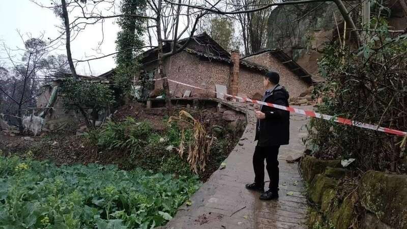 1月20日16时,富全镇蒲余村灾害风险隐患信息报送员甘建勤、熊建朝在巡查中发现,村民熊光林屋后山体有碎石掉落痕迹,经现场勘察,该山体石质为泡砂石,持续数月的干旱导致山体有开裂现象,坡面杂木树根贯穿裂缝,可能导致岩体疏松,结合降雨天气预警,经初步分析判断坡体有垮塌风险,威胁坡下1户2人安全,于是迅速向富全镇政府报告。接报后,富全镇政府立即通知驻蒲余村干部及灾害风险隐患信息报送员组成临时工作组,将受威胁群众转移至安全位置。