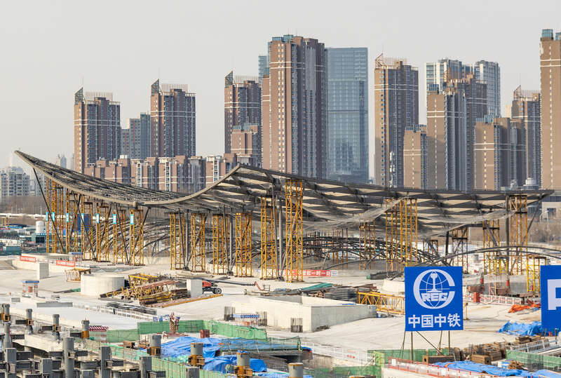 北京城市副中心站综合交通枢纽工程建设现场