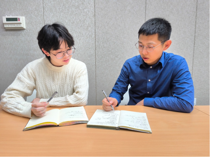何成(左)与李策交流
