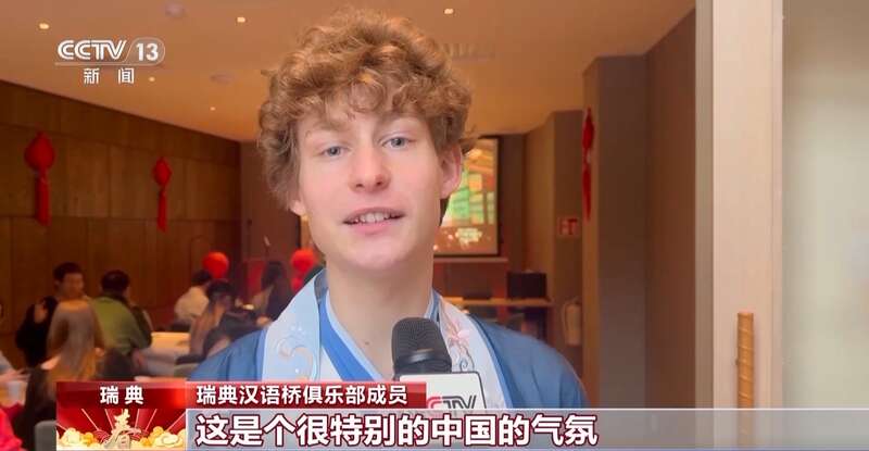 瑞典汉语桥俱乐部成员:我觉得(春晚)气氛很好,我觉得在瑞典没有这个气氛,这是个很特别的中国的气氛。