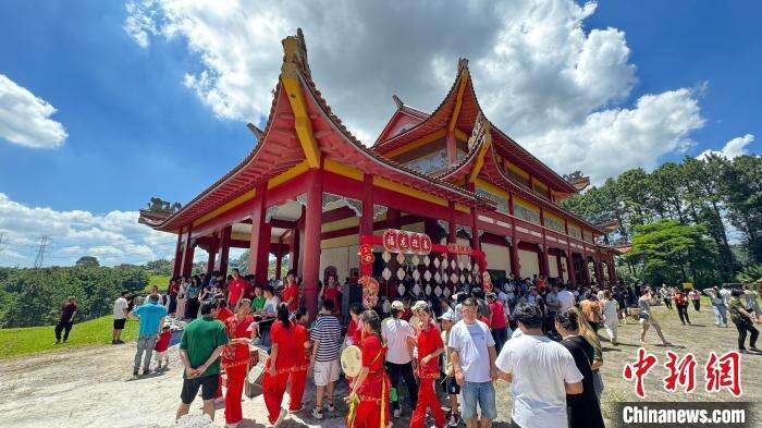 当地时间2月11日,巴西观音寺,福建籍侨胞在寺院建筑群里表演精彩的阵头艺术,并共同参与千人祈福。巴西华人华侨电商总会供图