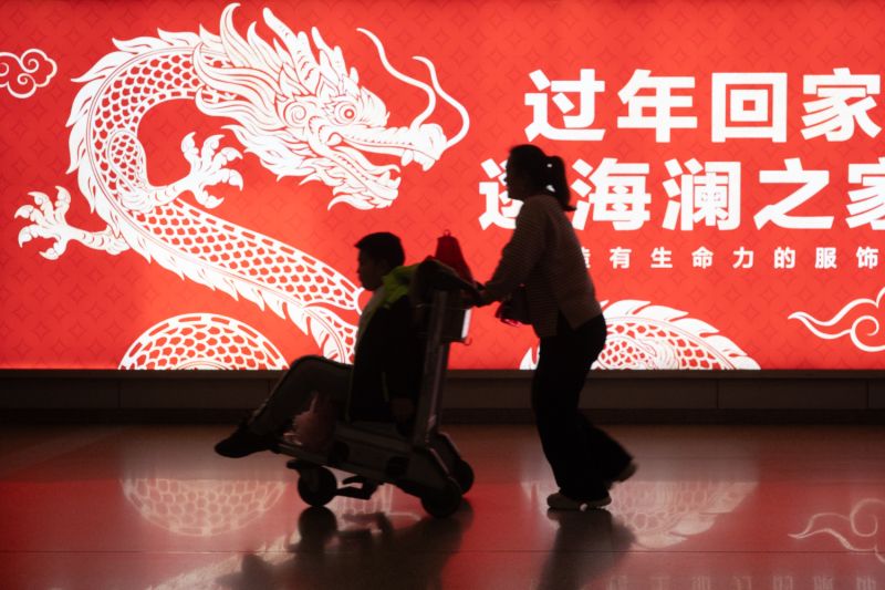 2024年2月18日,北京首都国际机场T2航站楼返程客流。