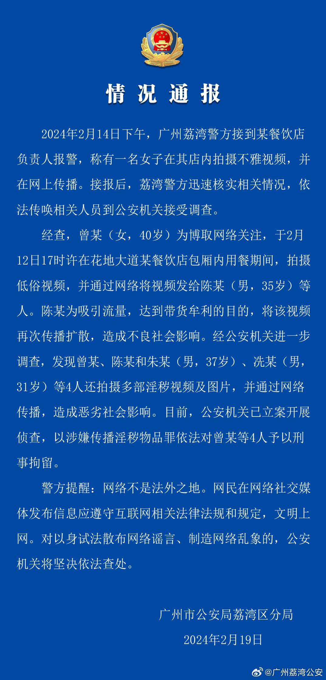 女子在餐厅包间拍不雅视频?广州公安通报:刑拘4人
