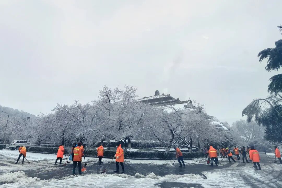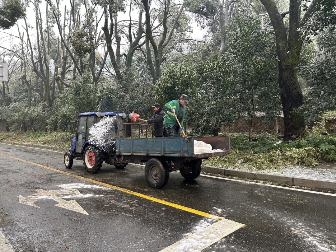 ▲饮食中心为道路封闭路段的学生宿舍雪中送餐