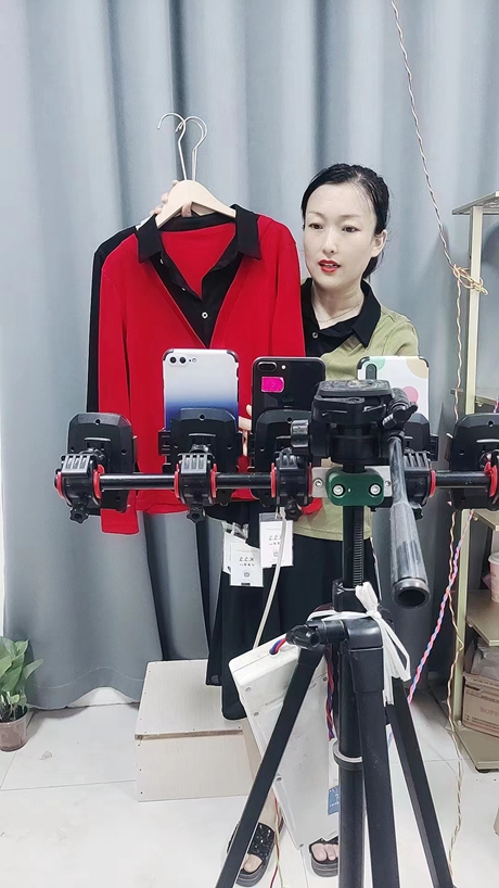她记得刚开始,只要开播就有人进直播间。为了多卖一些,她用5个手机同时在一个平台上直播,有人让试衣服,她先紧着粉丝多的账号试。