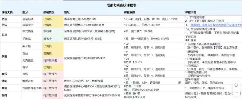五花八门的副业她都尝试过,目前比较稳定、收入占比最大的是去年11月开始做的夜校。那段时间,年轻人上夜校的话题火爆,她发现成都还没有,于是第一个在成都建起夜校社群,以组团的人数优势去找商家谈低价课,类似于兴趣班的拼多多,目前社区差不多有5000人。