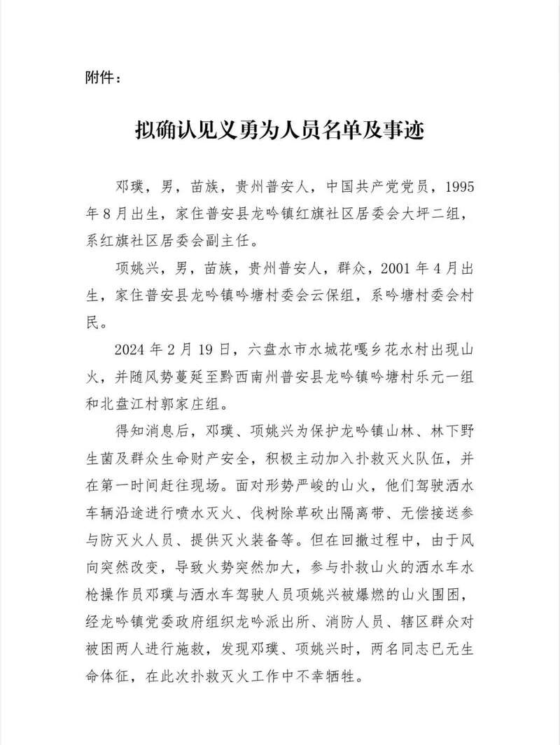 2月19日,山火从六盘水市水城县花嘎乡花水村烧到相邻的黔西南州普安县龙吟镇,当地随即开始组织进行灭火工作。